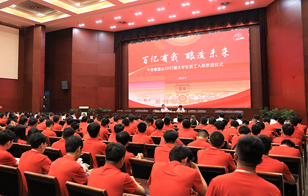 作為老員工代表,公司總監(jiān)兼銷(xiāo)售部總經(jīng)理余濤、副總監(jiān)兼釀酒中心主任金紹武分享與今世緣的故事。余濤表示,唯有實(shí)干,才能行穩(wěn)致遠(yuǎn)。加入今世緣23年,見(jiàn)證今世緣從小變大,由弱變強(qiáng)。新同事要爭(zhēng)做忠誠(chéng)企業(yè)、奮斗奮發(fā)、感恩惜緣、陽(yáng)光干凈的今世緣人。金紹武2007年大學(xué)畢業(yè)加入今世緣,釀酒車(chē)間的生產(chǎn)線成了他砥礪匠心的人生大道。他表示,新同事要想人生出彩,必須干得出眾。