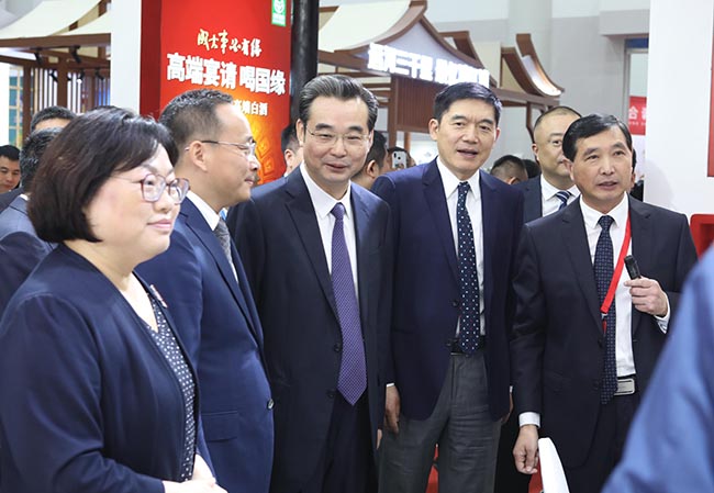 10月12日上午,第六屆中國(淮安)國際食品博覽會、金秋經貿洽談會開幕式后,江蘇省政府參事黃瀾,淮安市委書記史志軍,市長顧坤,副市長王向紅,漣水縣委書記洪然等領導嘉賓巡展時來到今世緣酒業展廳,詳細了解企業發展情況、優勢產品及市場情況,對今世緣產品品質給予點贊,勉勵今世緣進一步做大做優做強,加快全國化發展步伐。今世緣酒業紀委書記周亞東陪同參觀。
