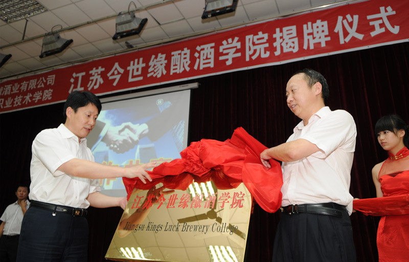6月18日,江蘇食品職業技術學院與江蘇今世緣酒業有限公司共同成立的“江蘇今世緣釀酒學院”舉行揭牌儀式。江蘇食品職業技術學院黨委書記、院長趙炳起,今世緣酒業副總經理吳建峰共同簽約并揭牌。江蘇今世緣釀酒學院院長由吳建峰擔任。食品學院常務副院長陶書中主持儀式。