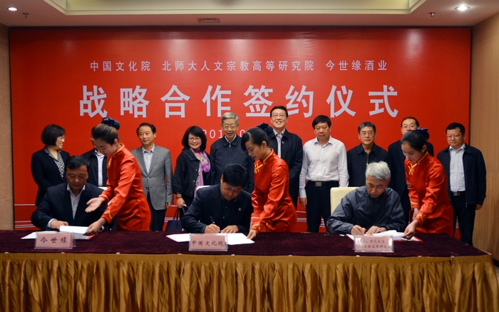 在許嘉璐的親切關(guān)懷下,今世緣酒業(yè)與中國文化院、北京師范大學(xué)人文宗教高等研究院就挖掘傳播緣文化達(dá)成了戰(zhàn)略合作協(xié)議。三方將合力建立中華緣文化學(xué)術(shù)研究平臺機(jī)構(gòu),集聚海內(nèi)外專家學(xué)者資源,凝聚多方智慧,有針對性對緣文化進(jìn)行基礎(chǔ)性、系統(tǒng)性研究,建立緣文化的基礎(chǔ)理論體系,從理論與實(shí)踐上研究中華緣文化的創(chuàng)造性轉(zhuǎn)化和創(chuàng)新性發(fā)展。有計劃地舉辦“中華緣文化論壇”,把論壇打造成緣文化挖掘與傳播的高地、文化品牌活動。許嘉璐還與市縣領(lǐng)導(dǎo)共同見證了三方戰(zhàn)略合作簽約儀式。(孫萬軍、王利)