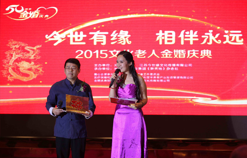 1、“今世有緣、相伴永遠”2015文化老人金婚慶典現場。